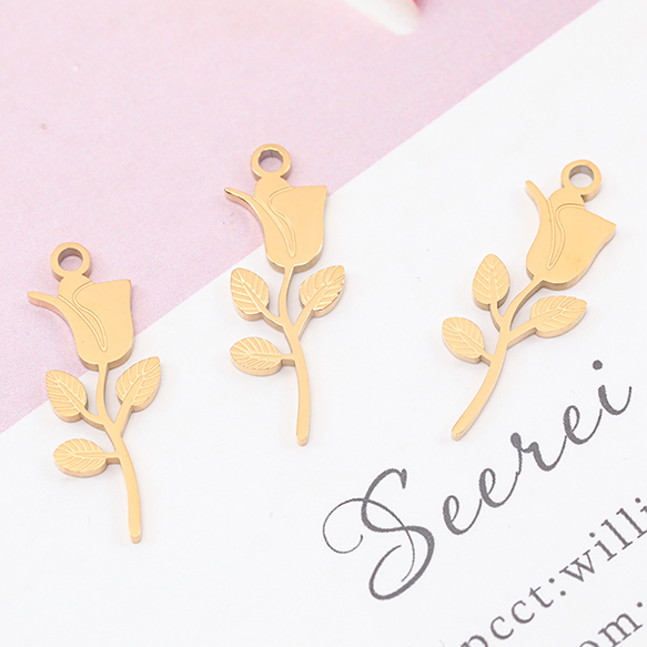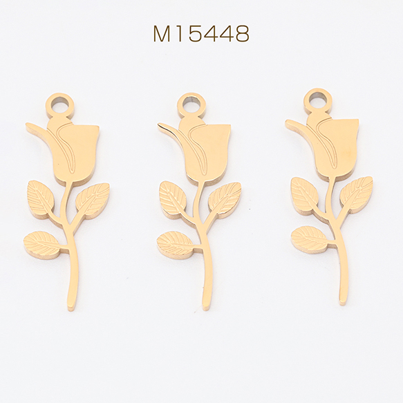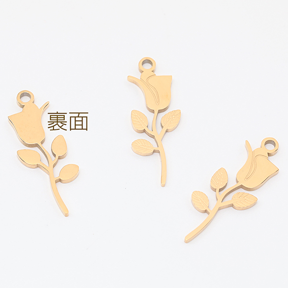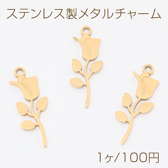ステンレス製メタルチャーム チューリップ フラワー 花 電気メッキ加工 SUS304 プレートチャーム 約8×24mm(1ヶ)