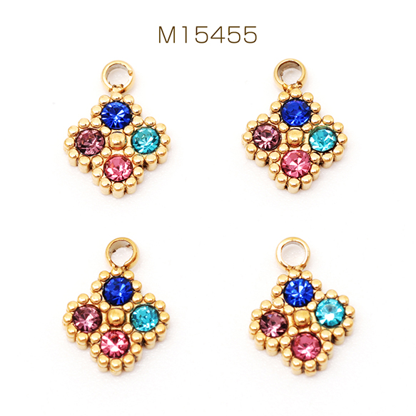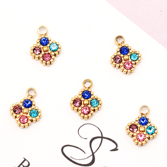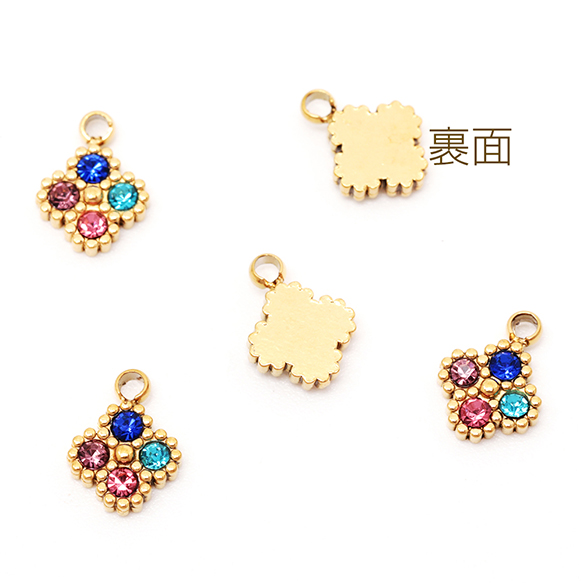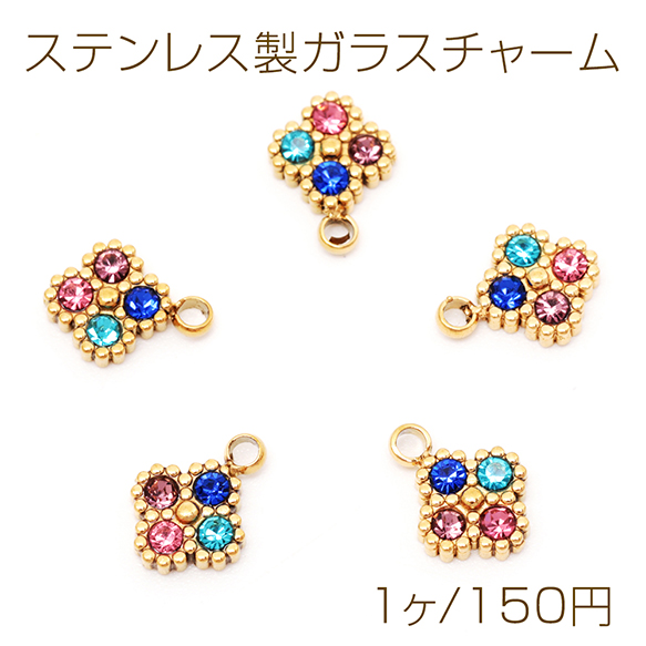 ステンレス製ガラスチャーム 四つ葉 クローバー 電気メッキ加工 SUS304 メタルチャーム 約6×8mm(1ヶ)