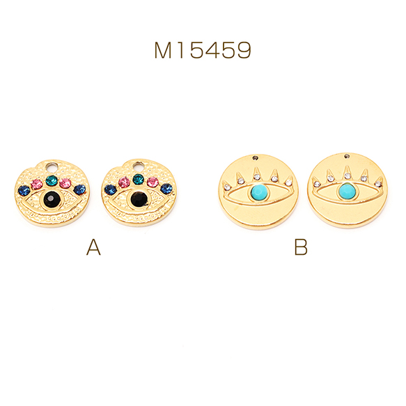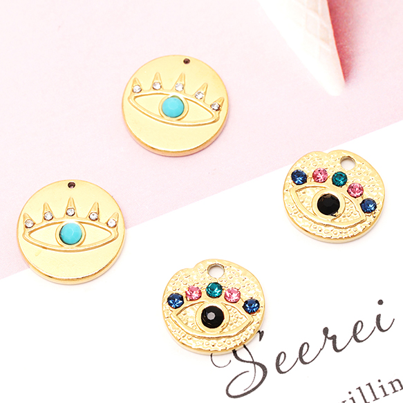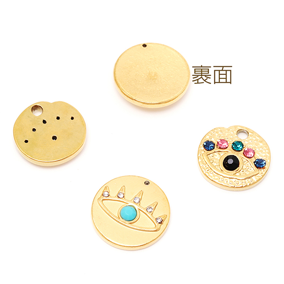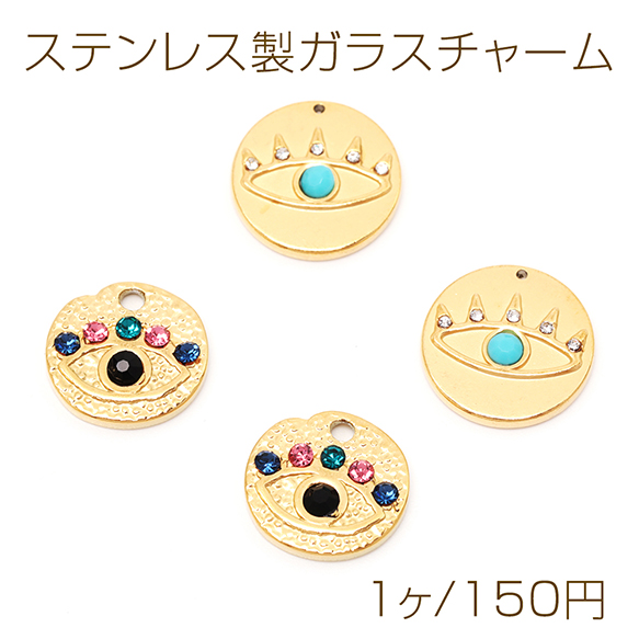 ステンレス製ガラスチャーム サークル 目 眼 瞳 電気メッキ加工 SUS304 タグ プレートチャーム 全2種(1ヶ)