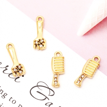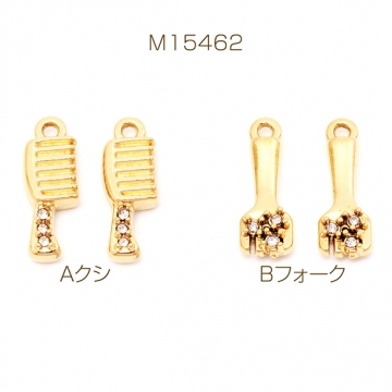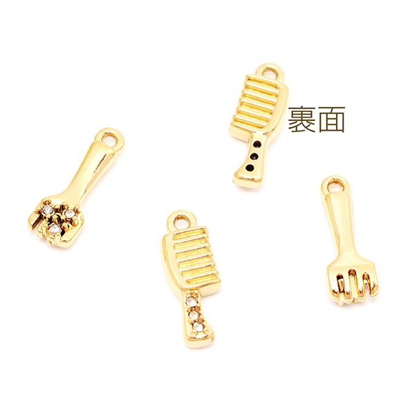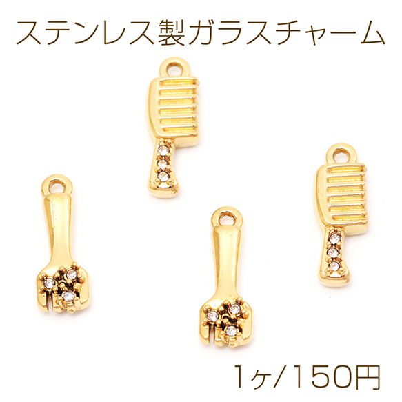 ステンレス製ガラスチャーム クシ フォーク ラインストーン 電気メッキ加工 SUS304 メタルチャーム 全2種(1ヶ)