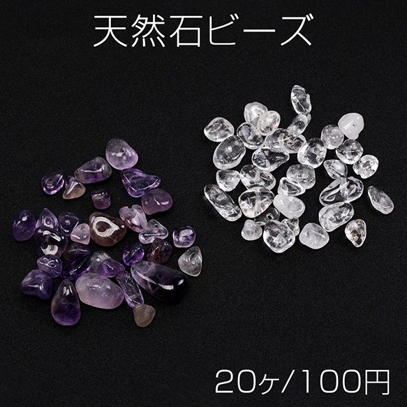 天然石ビーズ 不規則型 さざれ石 水晶 クォーツ 全2種(20ヶ)