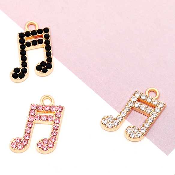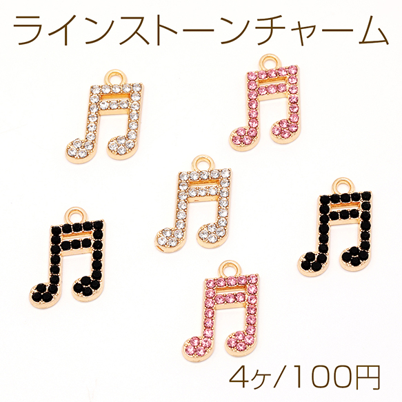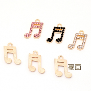 ラインストーンチャーム 音符 楽譜 音楽 ラインストーン キラキラ メタルチャーム 約11×17mm(4ヶ)