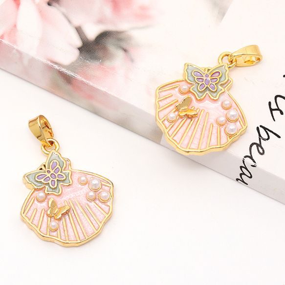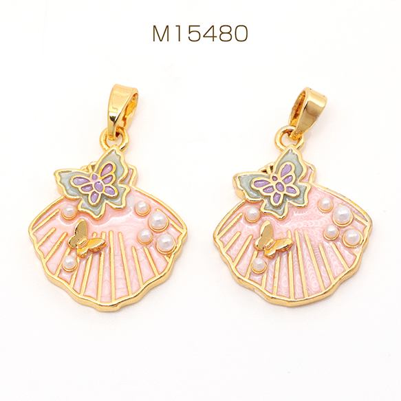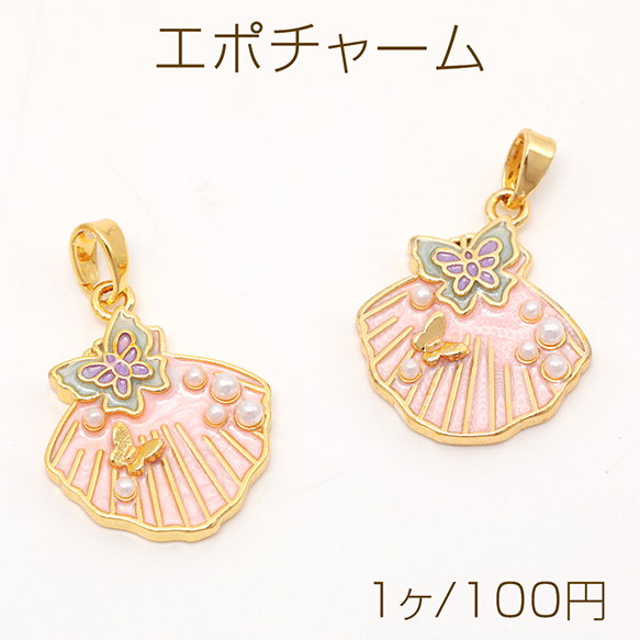 エポチャーム 貝殻 蝶々 ABSパール マリンチャーム メタルチャーム 約17×20mm(1ヶ)