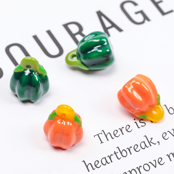 樹脂チャーム かぼちゃ 南瓜 食品サンプル 立体 1穴 ミニチュアチャーム 約10×13mm(4ヶ)