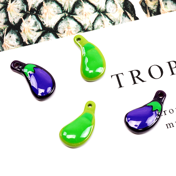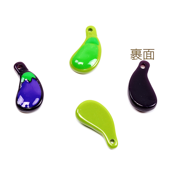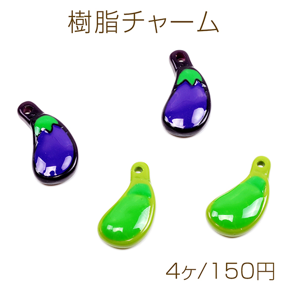 樹脂チャーム なすび ナス 茄子 食品サンプル 立体 1穴 ミニチュアチャーム 約8×15mm(4ヶ)