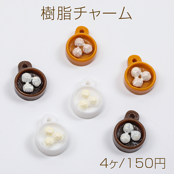 樹脂チャーム 蒸しパン 点心 食品サンプル 立体 1穴 ミニチュアチャーム 約11×14mm(4ヶ)