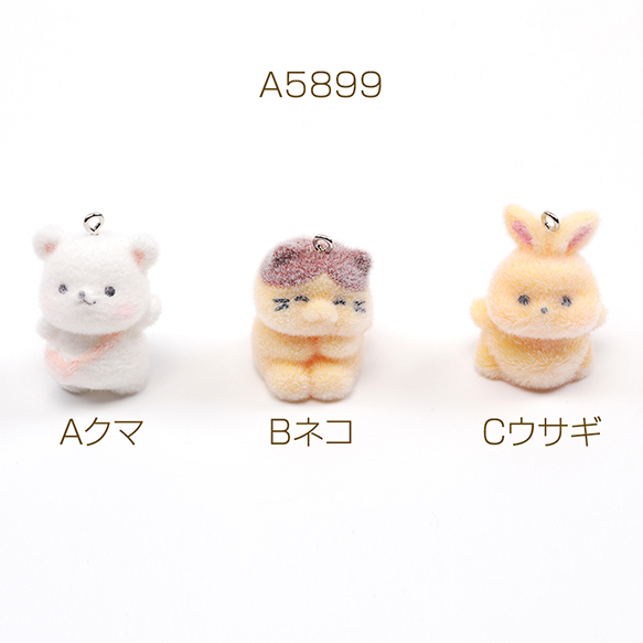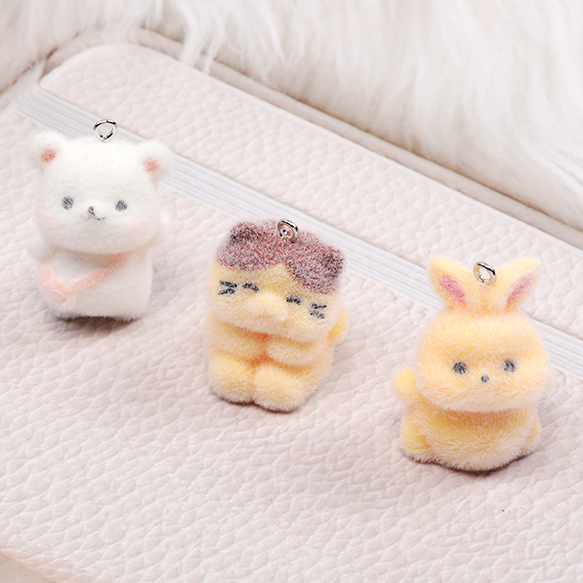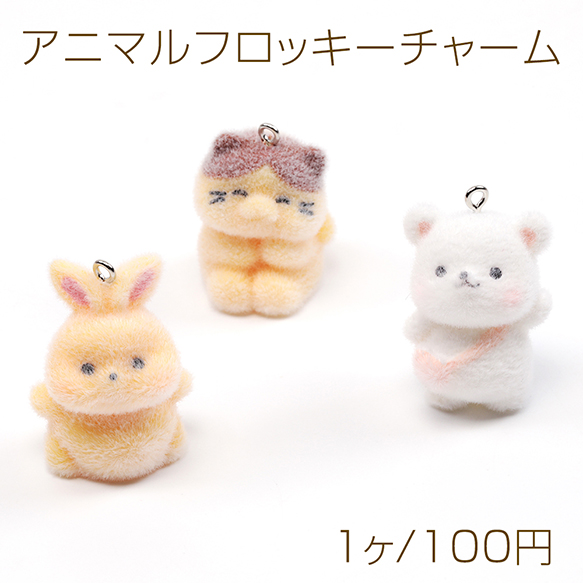 アニマルフロッキーチャーム クマ ネコ ウサギ アニマル 動物 樹脂チャーム 全3種(1ヶ)
