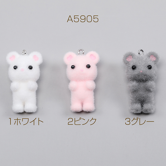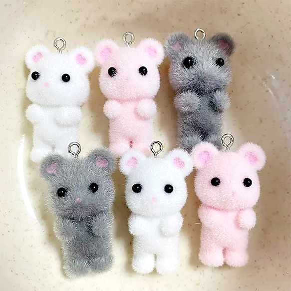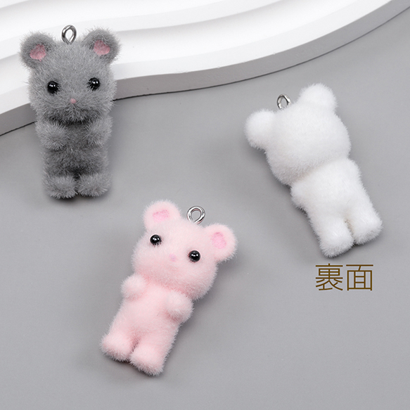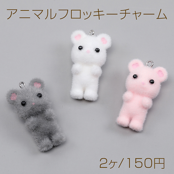 アニマルフロッキーチャーム ねずみ ネズミ 鼠 マウス アニマル 動物 樹脂チャーム 約20×36mm(2ヶ)