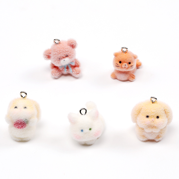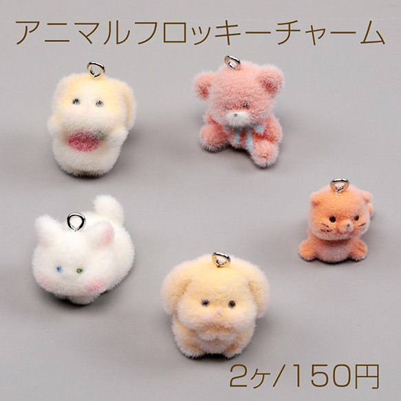 アニマルフロッキーチャーム 動物 アニマル ネコ くま ハムスター 生き物 樹脂チャーム 全5種(2ヶ)
