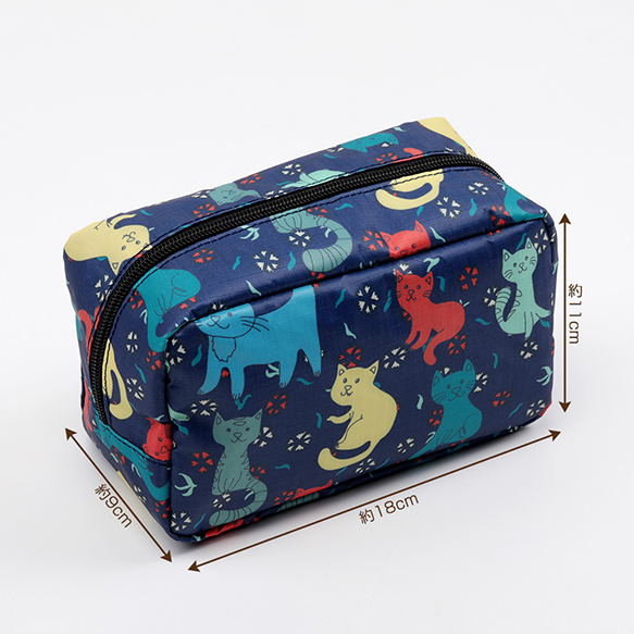 コスメポーチ ネコ ねこ 猫柄 コスメバッグ 防水 化粧ポーチ 化粧バッグ 小物入れ 約9×11×18cm(1ヶ)
