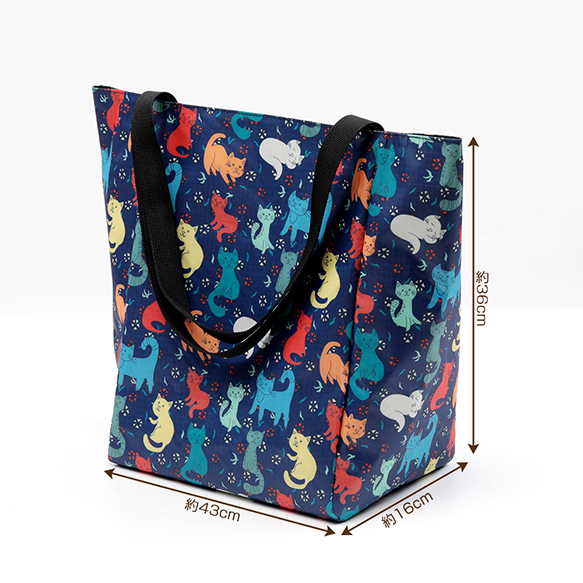 トートバッグ ネコ ねこ 猫柄 防水 底マチ付き 大容量 キャンプ 運動会 エコバッグ 約13×36×43cm(1ヶ)
