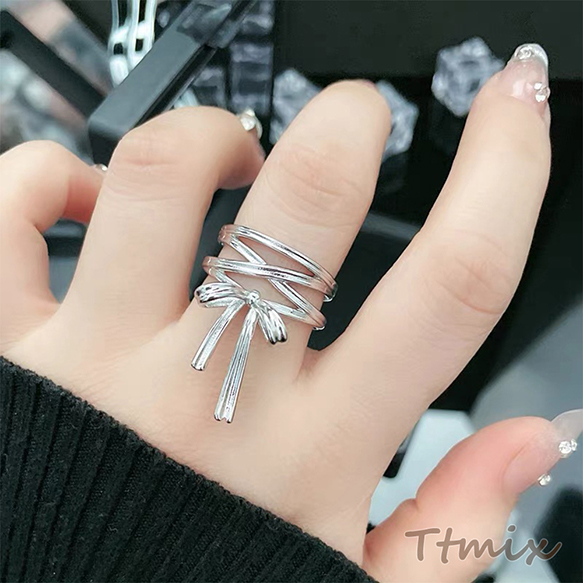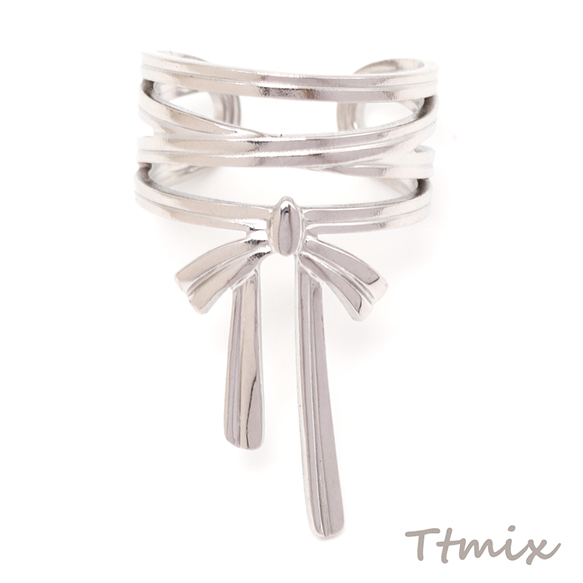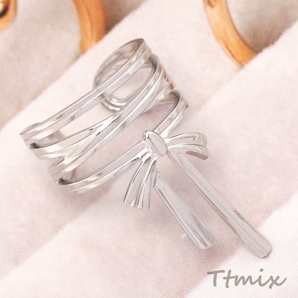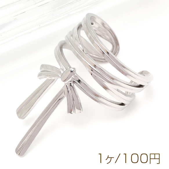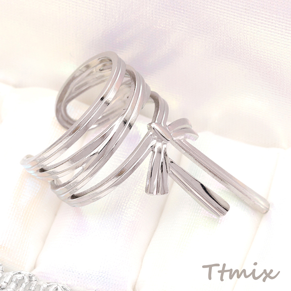 ステンレスデザインリング SUS304 高品質 三連 リボン 太め オープンリング 指輪 18号内径約18.7mm(1ヶ)