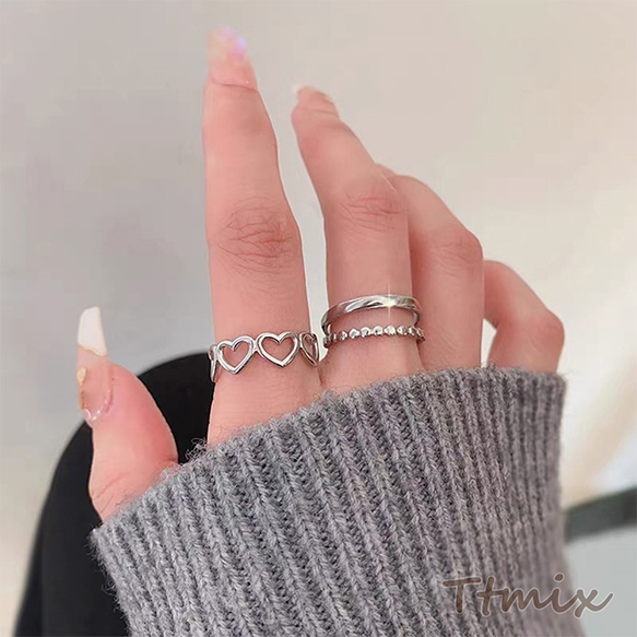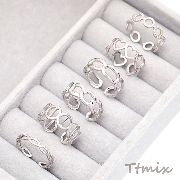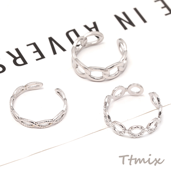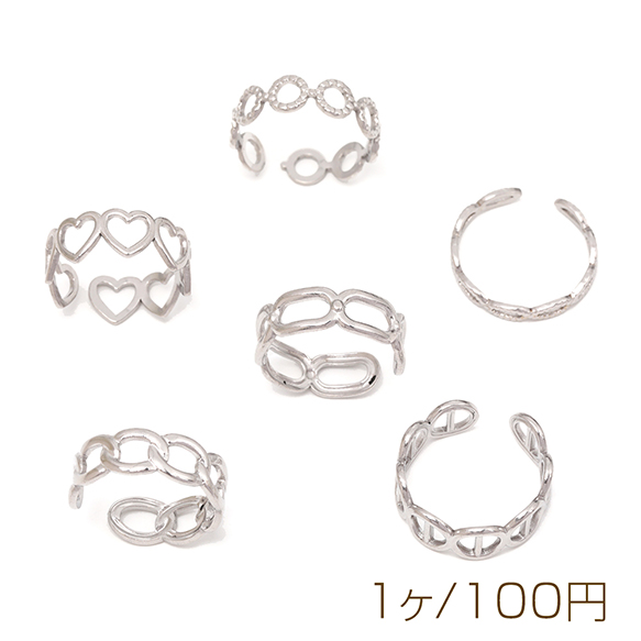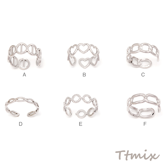 ステンレスデザインリング SUS304 高品質 リングフレームデザイン シンプル オープンリング 指輪 全6種(1ヶ)