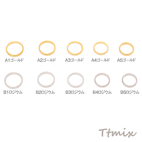 サイズ:幅約3mm:【A1】19号内径約19mm【A2】16号内径約18mm【A3】13号内径約17mm【A4】10号内径約16mm【A5】7号内径約15mm【B1】19号内径約19mm【B2】16号内径約18mm【B3】13号内径約17mm【B4】10号内径約16mm【B5】7号内径約15mm