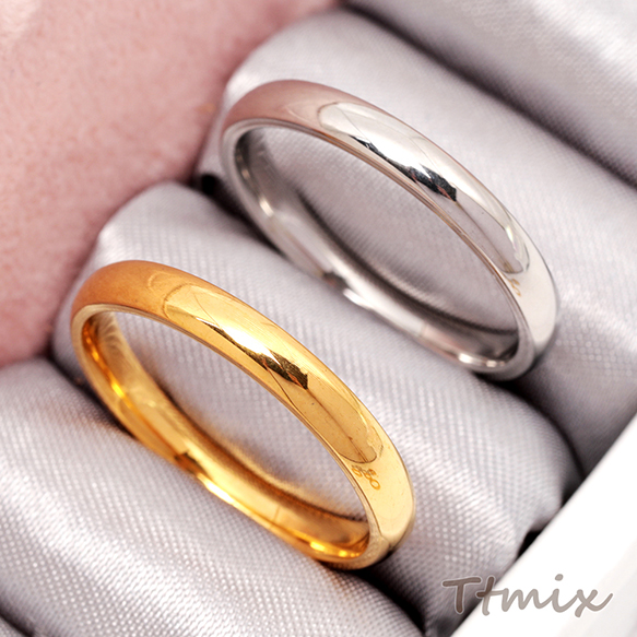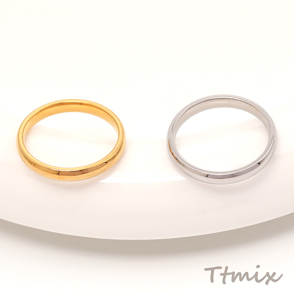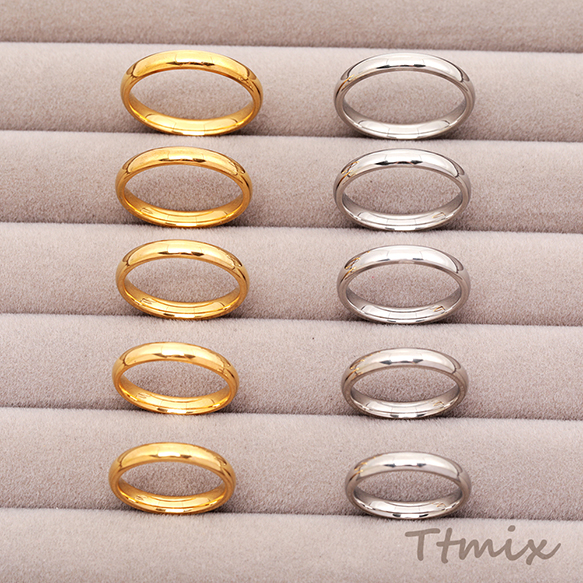 ステンレスリング 幅約3mm 丸みのあるデザイン シンプル 無地 SUS304 ゴールド シルバー 指輪 全10種(2ヶ)