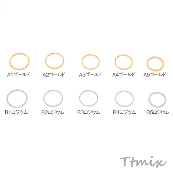 サイズ:幅約1.5mm:【A1】19号内径約19mm【A2】16号内径約18mm【A3】13号内径約17mm【A4】10号内径約16mm【A5】7号内径約15mm【B1】19号内径約19mm【B2】16号内径約18mm【B3】13号内径約17mm【B4】10号内径約16mm【B5】7号内径約15mm
