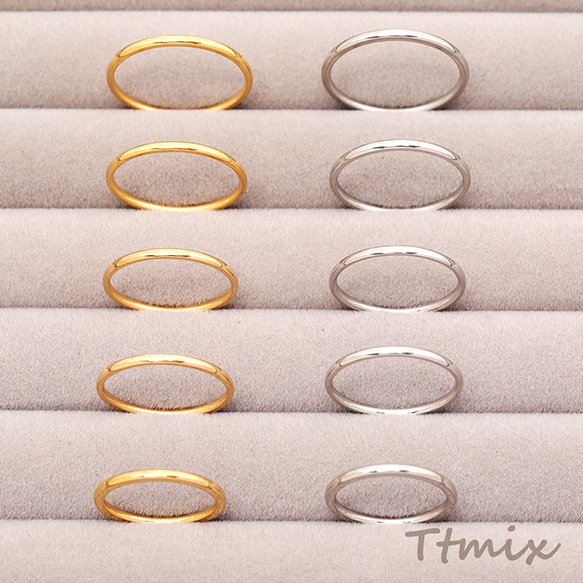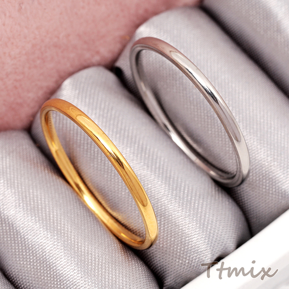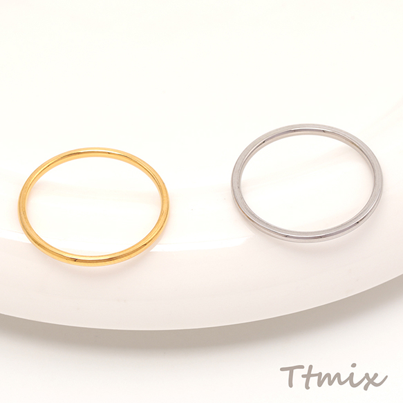 ステンレスリング 幅約1.5mm 丸みのあるデザイン シンプル 無地 SUS304 ゴールド シルバー 指輪 全10種(2ヶ)