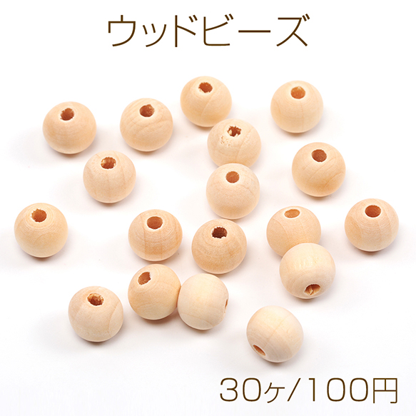 ウッドビーズ 木製 ナチュラル 丸玉 ラウンド 約10mm(30ヶ)