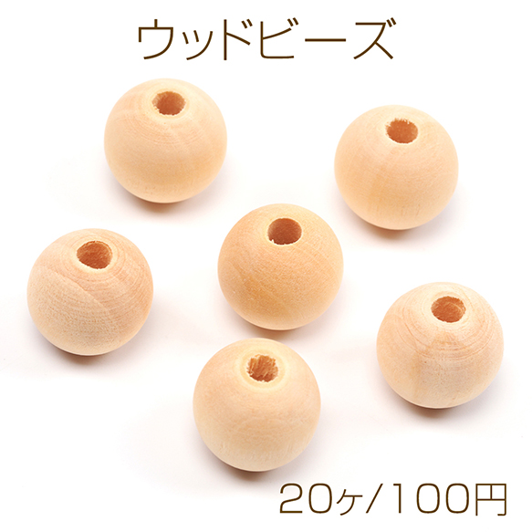 ウッドビーズ 木製 ナチュラル 丸玉 ラウンド 約18mm(20ヶ)