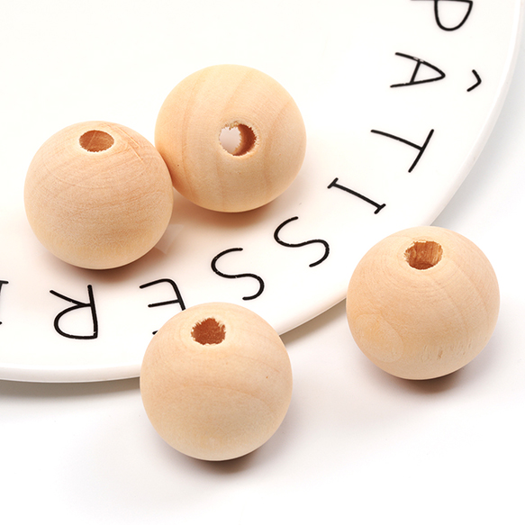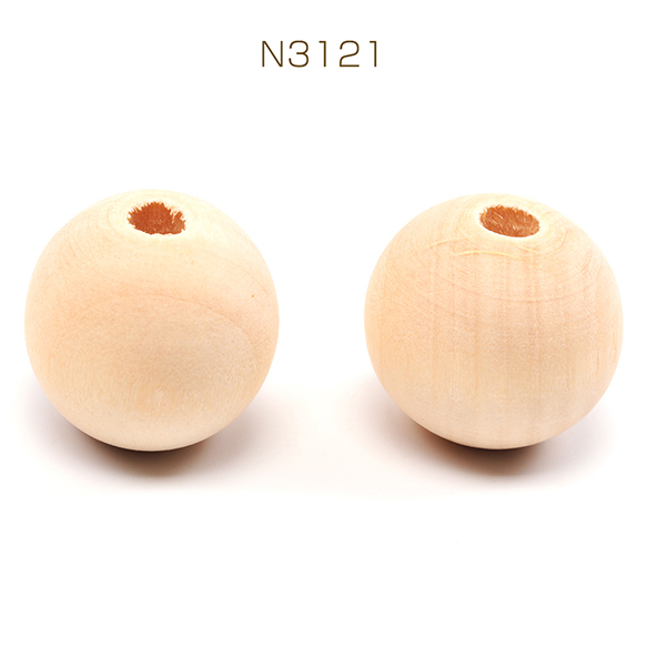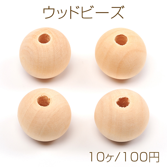 ウッドビーズ 木製 ナチュラル 丸玉 ラウンド 約25mm(10ヶ)