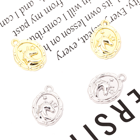 ユニコーンチャーム コインチャーム 絵画風 凹凸 メルヘン 幻想的 メタルチャーム 約12×17mm(6ヶ)