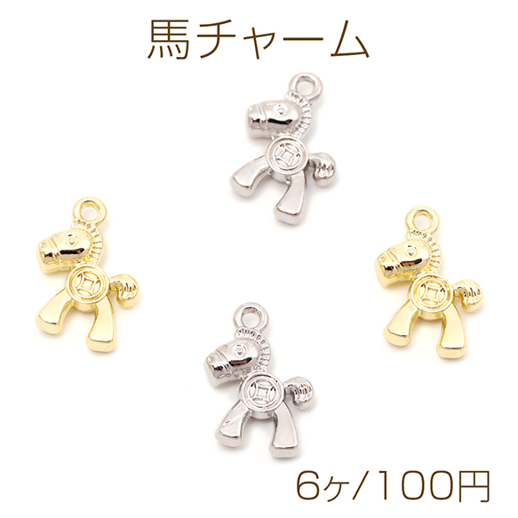 馬チャーム ウマ ポニー 立体 生き物 メタルチャーム 約11×15mm(6ヶ)