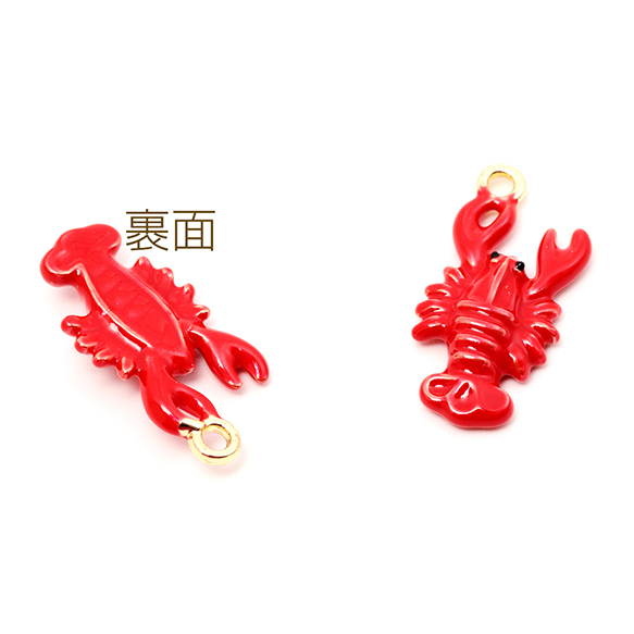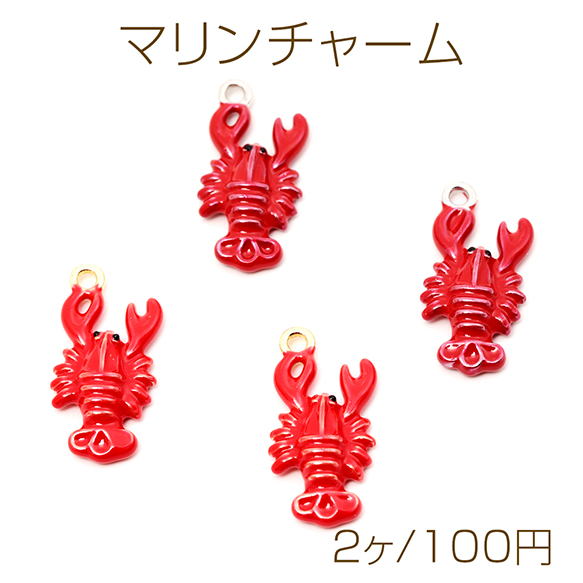 マリンチャーム ロブスター 海老 海 海洋生物 立体 エポチャーム メタルチャーム 約11×22mm(2ヶ)