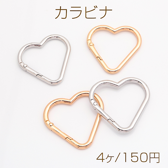 カラビナ ハート キーリング キーホルダー リング ゴールド ロジウム カニカン フック金具 留め具 約40mm(4ヶ)