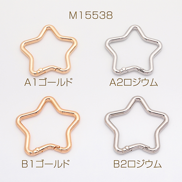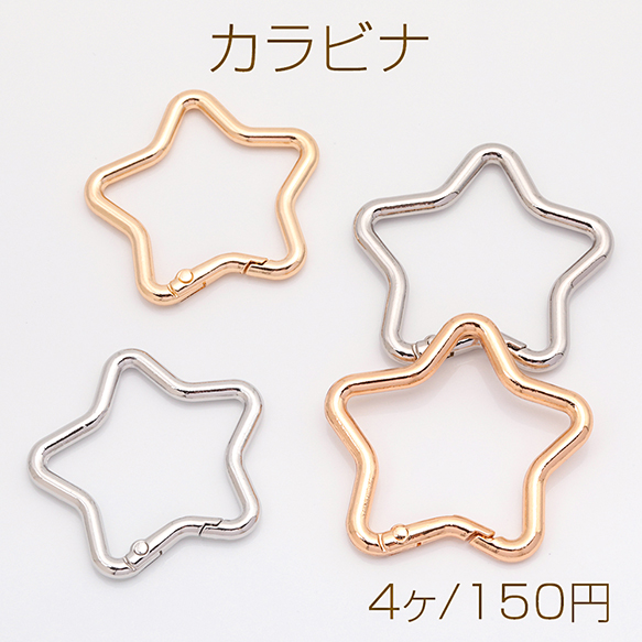 カラビナ キーリング スター 星 キーホルダー リング ゴールド ロジウム カニカン フック金具 留め具 約40mm(4ヶ)