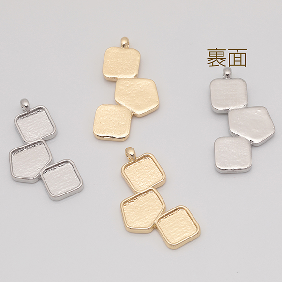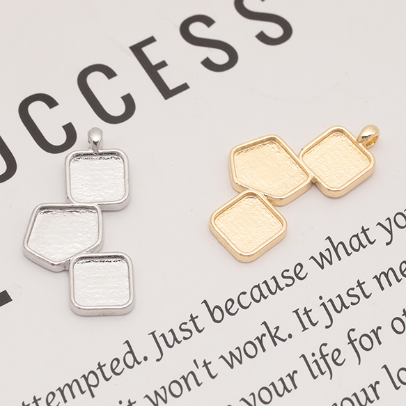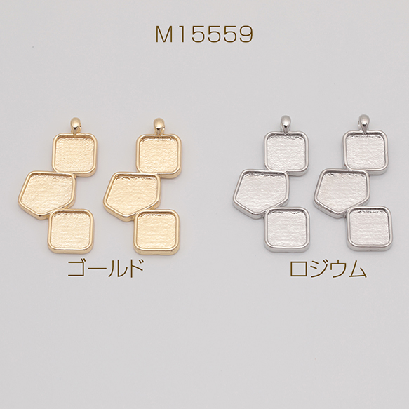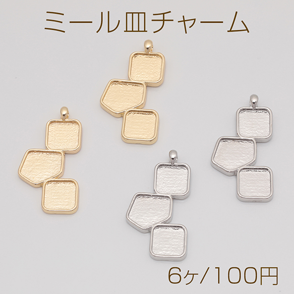 ミール皿チャーム 四角&多角形&四角 UVレジン セッティング台 レジン台座 メタルチャーム 約14×27mm(6ヶ)