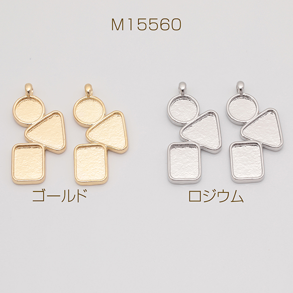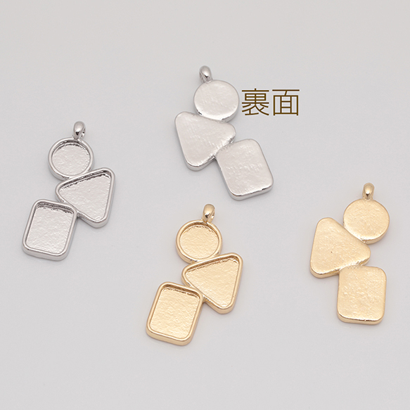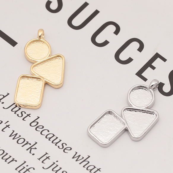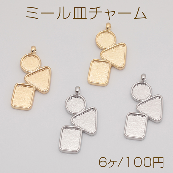 ミール皿チャーム 円形&三角形&四角 UVレジン セッティング台 レジン台座 メタルチャーム 約13×25mm(6ヶ)