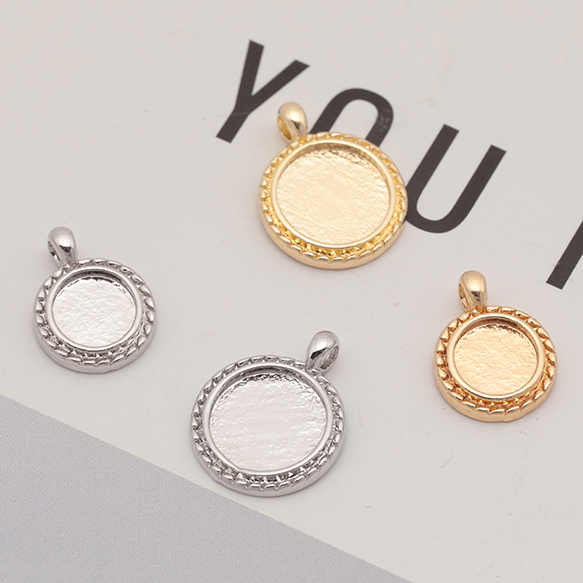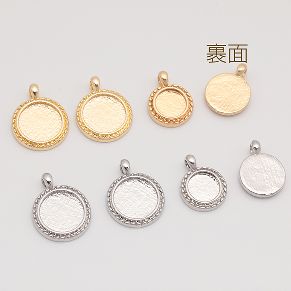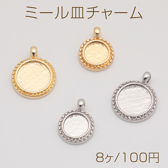 ミール皿チャーム ラウンド 円形 UVレジン セッティング台 レジン台座 メタルチャーム 約12×15mm(8ヶ)