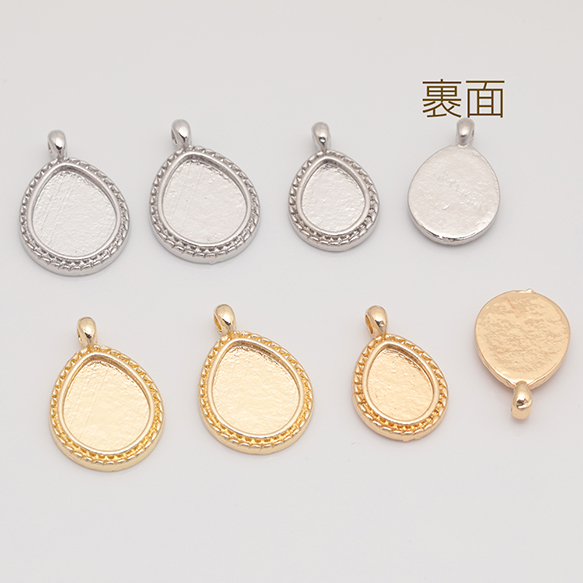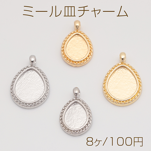 ミール皿チャーム しずく型 UVレジン セッティング台 レジン台座 メタルチャーム 約11×17mm(8ヶ)