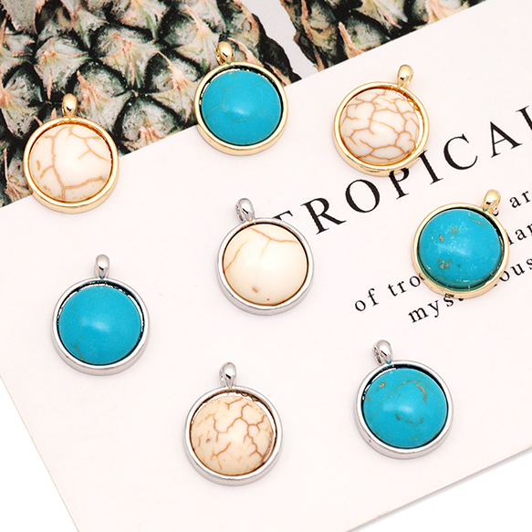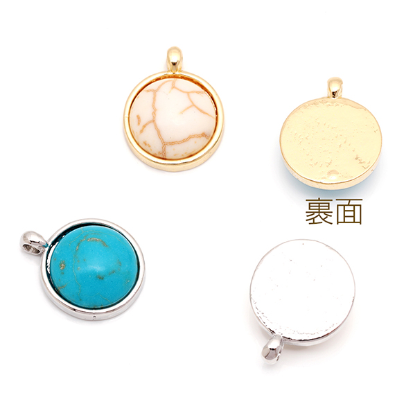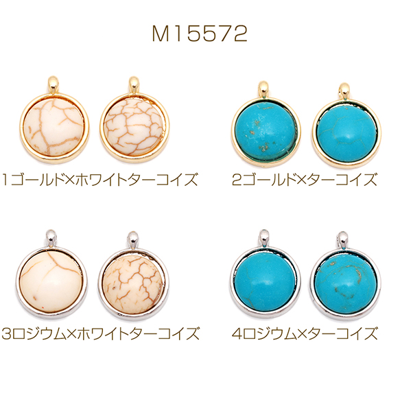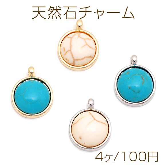 天然石チャーム 丸形 ラウンド 半円 ターコイズ メタルチャーム 約12×15mm(4ヶ)