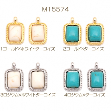天然石チャーム 長方形 スクエア ターコイズ メタルチャーム 約10×15mm(4ヶ)