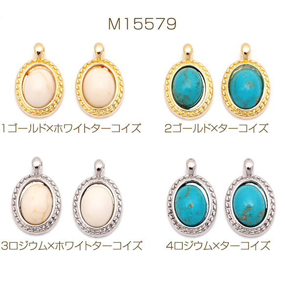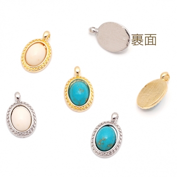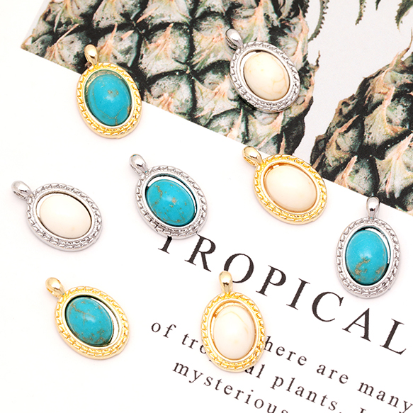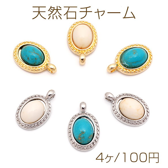 天然石チャーム 楕円形 オーバル ターコイズ メタルチャーム 約10×15mm(4ヶ)