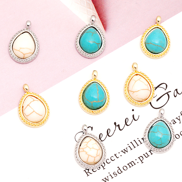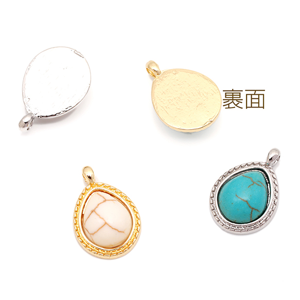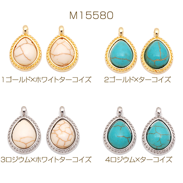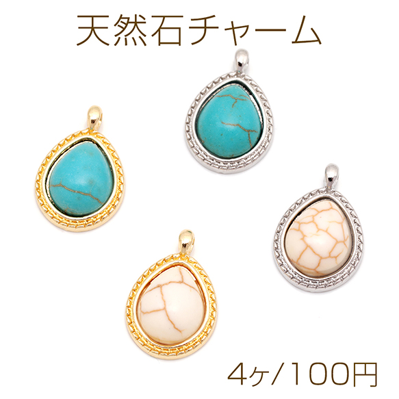 天然石チャーム しずく型 雫型 ターコイズ メタルチャーム 約11×17mm(4ヶ)