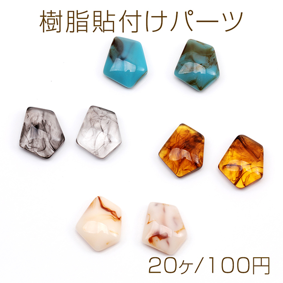 樹脂貼付けパーツ 多角形 マーブル カボション デコパーツ 貼り付けパーツ 約8×10mm(20ヶ)