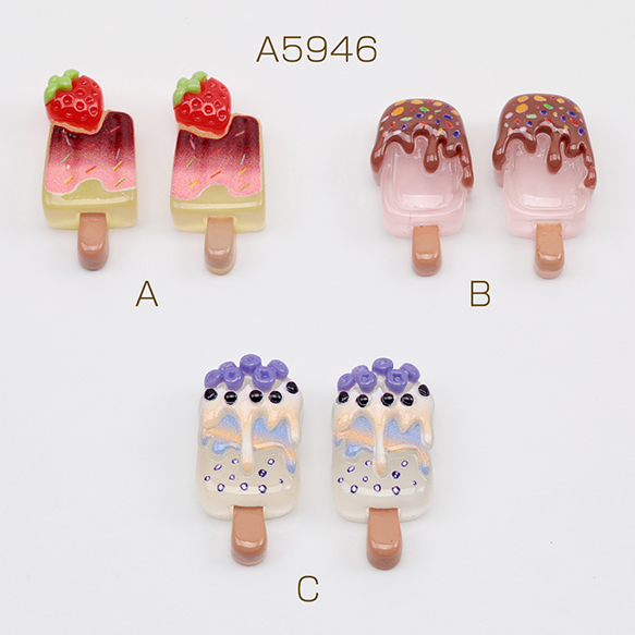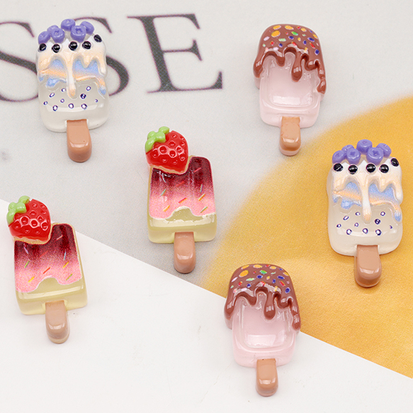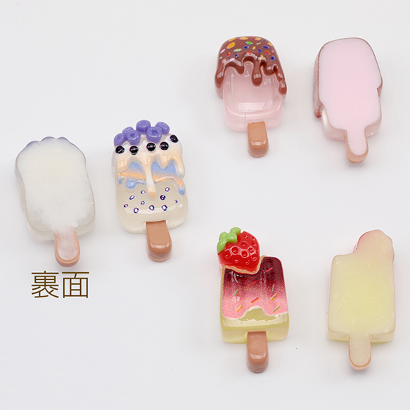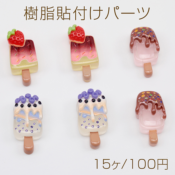 樹脂貼付けパーツ アイス ミニチュア 食品サンプル カボション デコパーツ 貼り付けパーツ 全3種(15ヶ)