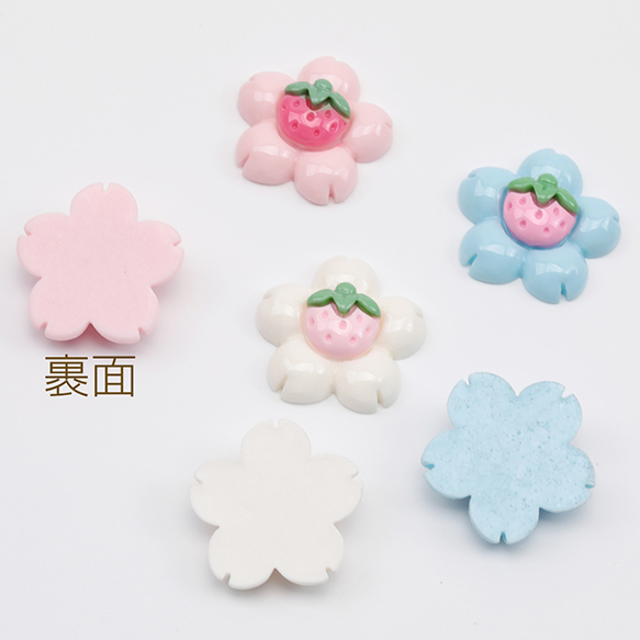 樹脂貼付けパーツ フラワー 桜 いちご カボション デコパーツ 貼り付けパーツ 約22mm(15ヶ)