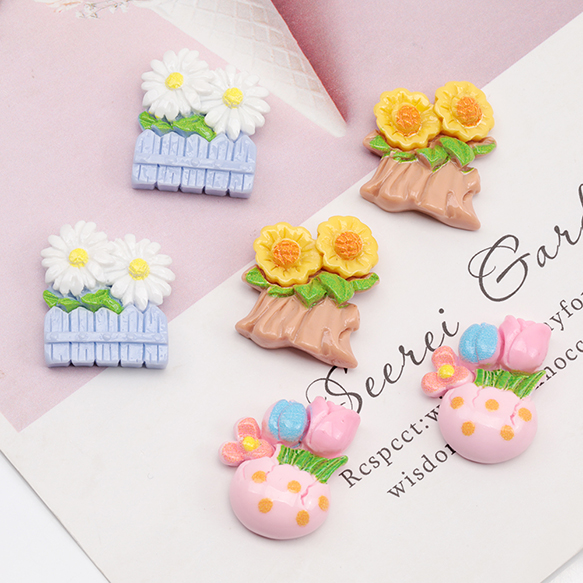樹脂貼付けパーツ チューリップ ひまわり 菊 フラワー カボション デコパーツ 貼り付けパーツ 全3種(15ヶ)