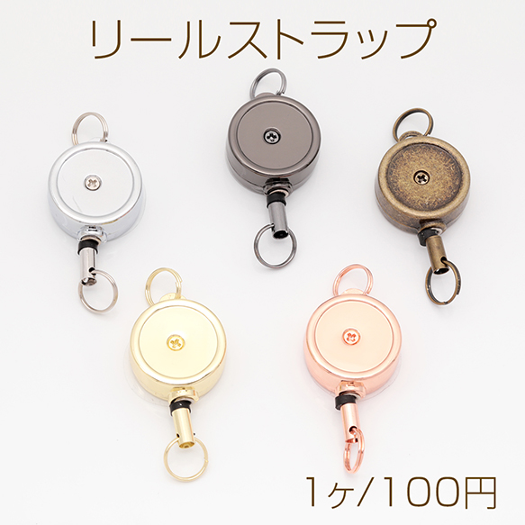 リールストラップ 金属製 伸縮 便利なリールキーホルダー 紛失防止 パスケース 定期入れ用 約21×50mm(1ヶ)