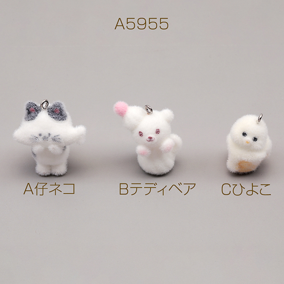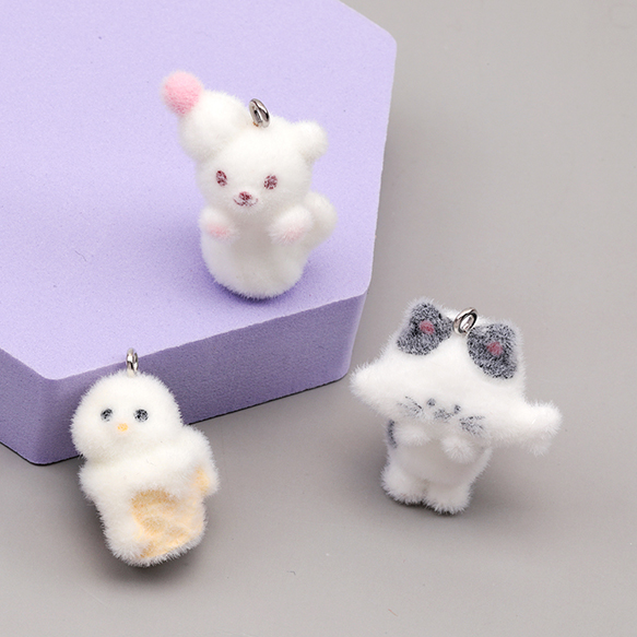 アニマルフロッキーチャーム ネコ 猫 クマ 熊 ひよこ 鳥 動物 アニマル 樹脂チャーム 全3種(1ヶ)