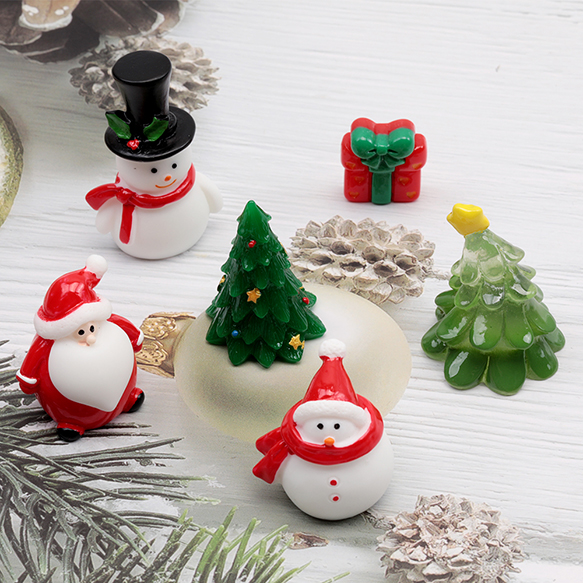 ミニチュア クリスマス ツリー サンタクロース 雪だるま 装飾 小物 ドールハウス 樹脂パーツ 全5種(2ヶ)