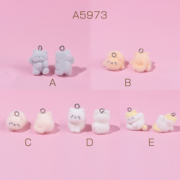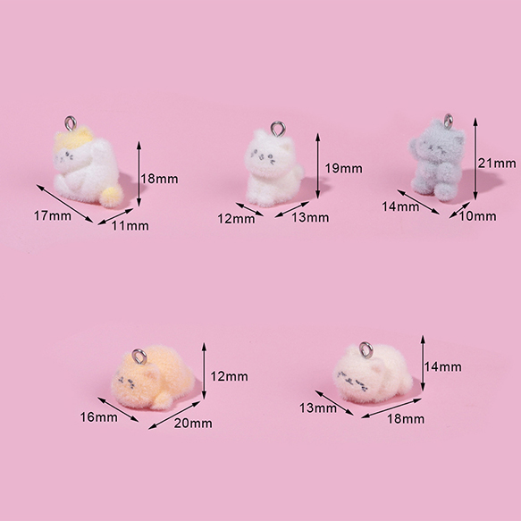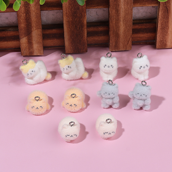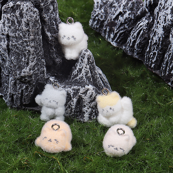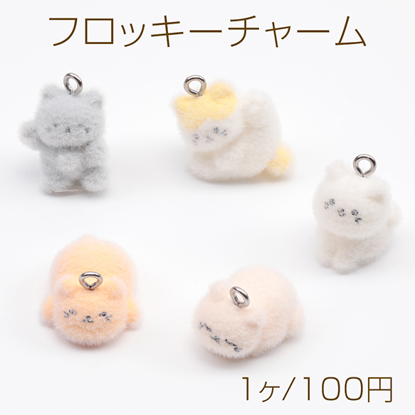 フロッキーチャーム 猫 ねこ ネコ キャット ミニチュアアニマル フロッキーマスコット フロッキーアニマル カン付き (1ヶ)