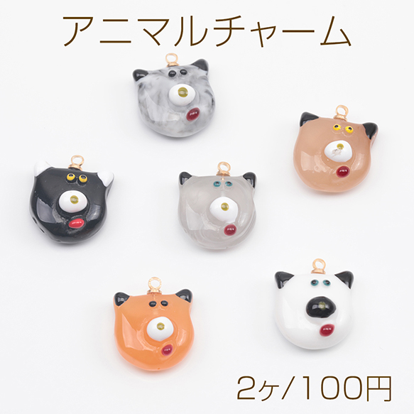 アニマルチャーム 樹脂製 くま顔 クマ 熊 ベア クマチャーム くまパーツ 動物チャーム カン付き 約15×15mm(2ヶ)