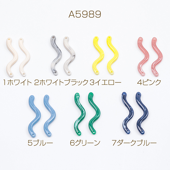 樹脂パーツ S字 スティックパーツ グラデーション マーブル 2穴 コネクタチャーム 樹脂チャーム 約3×31mm(6ヶ)