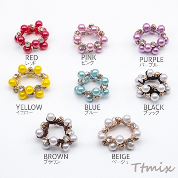 ヘアゴム 手編み ABSパール ストーン付き カラフル キラキラ 髪留め ヘアアクセサリー 単品(1ヶ)