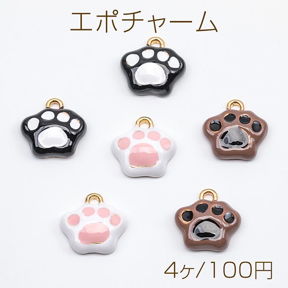 エポチャーム 肉球 にくきゅう イヌ ネコ ペット 動物 アニマル 半面 犬チャーム 猫チャーム 約12×13mm(4ヶ)