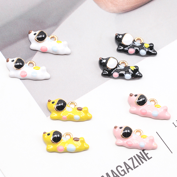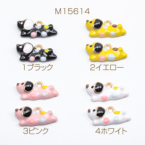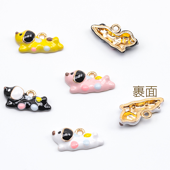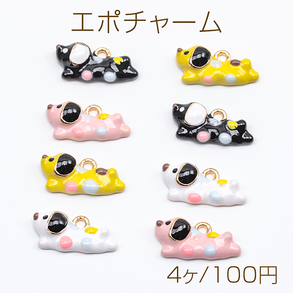 エポチャーム こいぬ イヌ 犬 カラフル 水玉 動物 アニマル 半面 犬チャーム 約8×18mm(4ヶ)